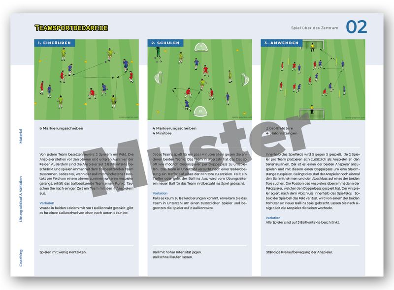 Sie erhalten 30 komplette Fussball-Trainingspläne, mit insgesamt 90 Trainingsübungen, auf hochwertigem Papier, in DIN A4 Grösse. Schwerpunkt: Koordinationstraining (Fussball) für Bambini und F-Jugend. Jeder der 30 Trainingspläne ist unterteilt in Aufwärmübung, Haupttrainingseinheit und Schlussteil. Somit erhalten sie 30 komplette Trainingspläne mit insgesamt 90 Trainingseinheiten. Die Übungen in den Trainingsplänen sind nicht identisch mit den Übungen in unseren Kartotheken, es sind komplett neue und eigenständige Einheiten. Diese innovativen Trainingpläne sind nicht im Handel erhältlich, sondern nur bei uns. Wir haben diese Pläne zusammen mit einem erfahrenen Fussball-Trainerteam verfasst und zusammengestellt. Es handelt sich um sehr verständlich aufgebaute Trainingseinheiten, kombiniert mit exzellent animierten Farbgrafiken.Einige deutsche Profivereine arbeiten bereits mit unseren Trainingsmaterialien.
