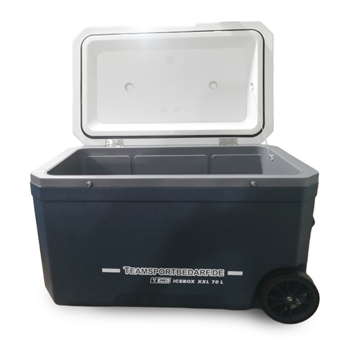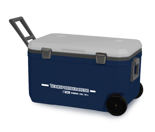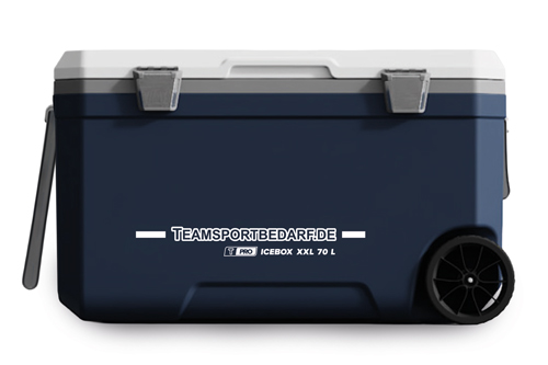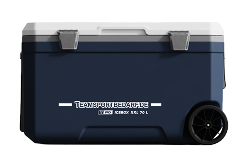 Sie erhalten eine hochwertige T-PRO Eisbox XXL (mobil) - 70 Liter. Die T-PRO Eisbox XXL überzeugt als perfekte, mobile Kühlstation durch Ihr durchdachtes Design und kompromisslose Qualität. Dank ihres großzügigen Fassungsvermögens von 70 Litern bietet sie ausreichend Platz für Kühlkompressen, Eis, Getränke oder Snacks. Zwei stabile Transportrollen und die ausklappbaren Handgriffe sorgen selbst bei voller Beladung für einen angenehmen Transport, während der massive Deckel mit zwei Schnellverschlüssen den Inhalt sicher verschließt und die Kälte stundenlang zuverlässig im Inneren hält. Die im Deckel eingelassenen Aussparungen dienen hierbei ideal als Halterung für Getränke. Das robuste Gehäuse in elegantem Navy-Blau unterstreicht zusätzlich den professionellen Look und schützt zugleich vor Stößen und Wettereinflüssen. Egal also, ob für den Einsatz im Sportbereich, den Freizeitgebrauch oder den mobilen Kühlbedarf unterwegs – die T-PRO Eisbox XXL bietet Ihnen die perfekte Kombination aus Funktion, Komfort und Langlebigkeit. Ein absolutes Muss für jeden, der Wert auf maximale Kühlleistung legt! Der Preis bezieht sich auf je eine hochwertige T-PRO Eisbox XXL (mobil). Mit unseren Produkten arbeiten auch Trainer aus dem Profibereich. Den passenden Betreuerbedarf, Wunschbedruckungen für unsere Eisbox, sowie weitere interessante Artikel erhalten Sie ebenfalls in unserem Shop.
