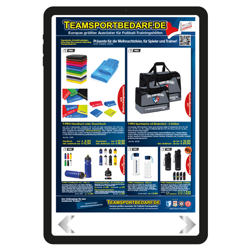 Das neue Teamsportbedarf.de Download - Handout "Weihnachtspräsente" (2025/26) ist da! Sie erhalten eine 6-seitige Datei im PDF Format, direkt auf Ihr Tablet oder Smartphone. Voll gepackt mit vielen neuen innovativen Ideen für die nächste Weihnachtsfeier, darf der digitale Katalog auf keinem Gerät fehlen. So können Sie auch unterwegs jederzeit in unserem Sortiment stöbern. Alle Artikel des Download-Handouts befinden sich ebenso in unserem Onlineshop und können somit jederzeit bequem bestellt werden. Selbstverständlich, wie gewohnt, im günstigen Preis-Leistungs-Verhältnis! Überzeugen Sie sich selbst! Mit unseren Artikeln arbeiten auch Trainer aus dem Profibereich!