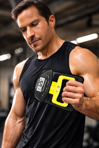 Sie erhalten einen modernen Handtrainer zur optimalen Stärkung des Unterarms und Handgriffs. Mit diesem Gerät messen Sie Ihre Griffkraft präzise und zuverlässig. Ob für Krafttraining, Rehabilitation, Physiotherapie oder Leistungskontrolle: Dieses kompakte Messgerät liefert exakte Ergebnisse und motiviert Sie, Ihre Fortschritte sichtbar zu machen. Dank der elektronischen Erfassung der Griffkraft bis 90 kg (198 lbs) erhalten Sie sofort klare Messwerte auf dem gut ablesbaren Display. Im Inneren arbeitet ein hochpräziser Dehnungsmesser-Sensor, der selbst kleinste Kraftunterschiede zuverlässig erfasst – ideal für ambitionierte Sportler ebenso wie für Einsteiger oder Senioren. Der verstellbare Griff passt sich flexibel an unterschiedliche Handgrößen an und eignet sich damit für Benutzer jeden Alters. Das robuste Gehäuse aus Kunststoff und legiertem Stahl sorgt zusätzlich für Langlebigkeit und ein sicheres Griffgefühl, auch bei intensiver Nutzung. Mehrere einstellbare Modi ermöglichen eine individuelle Nutzung z.B. zur Fortschrittskontrolle, für verschiedene Trainingsniveaus oder unterschiedliche Benutzerprofile. Durch den praktischen Batteriebetrieb (2x AAA-Batterien) lässt sich das Gerät jederzeit einsetzen. Ein unverzichtbares Tool für alle, die ihre Griffkraft gezielt messen, analysieren und verbessern möchten! Weitere interessante Trainingshilfen können Sie ebenfalls in unserem Shop erwerben. Mit unseren Trainingshilfen arbeiten auch Trainer aus dem Profibereich!
