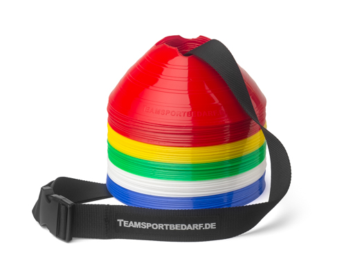 Sie erhalten ein hochwertiges 50er Set - Muldenhauben (5 Farben) ø 20 cm inkl. Tragegurt. Die Hauben aus flexiblem Kunststoff sind sehr belastbar und biegsam und haben einen Durchmesser von je 20 cm. Mit ihnen können Sie z.B. Spielfelder oder Parcours markieren, egal ob auf Rasen-, Kunstrasen-, Hartplätzen oder in der Halle. Die Hauben sind mit Mulden versehen und lassen sich somit zusammen mit den passenden Hürdenstangen, schnell zu einem Mini-Hürden-System kombinieren. Unsere Muldenhauben sind ideal geeignet für das Training von Dribblings und Bewegungsabläufen oder auch für kognitives Training. Dank des im Set enthaltenem größenverstellbaren Tragegurt transportieren Sie Ihre Markierungshütchen schnell, bequem und ordentlich. Der praktische Clip-Verschluss sorgt hierbei für ein besonders leichtes Handling. Der Preis bezieht sich auf je 50 Muldenhauben inkl. Tragegurt. Die passenden Trainingsübungen oder weitere Markierungshilfen,können Sie ebenfalls in unserem Shop erwerben. Mit unseren Produkten trainieren bereits Mannschaften aus dem Profisport!