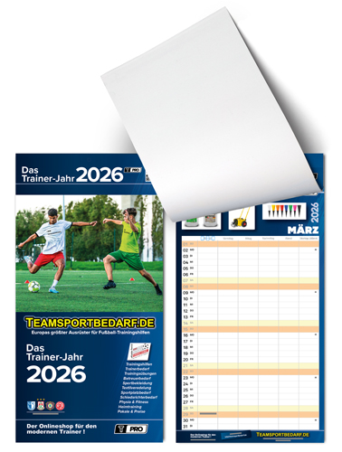 Der neue Teamsportbedarf.de Wandkalender 2026 ist da! Dieser hochwertige Abreißkalender ist sehr übersichtlich aufgebaut und bietet täglich 6 Spalten für Notizen. Der Kalender ist kostenlos und darf in keinem Sportverein fehlen! Überzeugen Sie sich selbst! Bei uns kaufen auch Profitrainer!