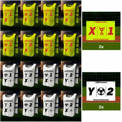 Sie erhalten ein hochwertiges T-PRO Connect - TEAM-SET 8x8 - 3 Größen. Dieses Set wurde speziell entwickelt, die kognitiven Fähigkeiten, Handlungsschnelligkeit und Spielübersicht der Spieler gezielt zu verbessern. Erhältlich in drei Größen (S, M-L, XL), passt sich das Set optimal an verschiedene Alters- und Leistungsstufen an. Es besteht aus jeweils 8x Trainingswesten (Farbe: Neongelb), 8x Trainingswesten (Farbe: Weiß), 4x Tormarkierungen, 16x Karabinerhaken, sowie dem passenden Mesh-Beutel zur Aufbewahrung. Das TEAM-SET 8x8 bietet Ihnen somit die perfekte Ausstattung für intensives Gruppentraining mit durchdachten Details. Mit diesem Set heben Sie Ihr Training garantiert auf ein neues Niveau – für schnellere Entscheidungen, mehr Spielintelligenz und maximale Leistung! Die passenden Tormarkierungen, einzelne Leibchen, sowie weitere interessante Trainingshilfen können Sie ebenfalls in unserem Shop erwerben. Mit unseren Produkten trainieren bereits Mannschaften aus dem Profisport!