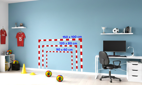 Sie erhalten ein hochwertiges Fußballtor Wandtattoo in 3 Größen. Mit diesem Fußballtor Wandtattoo (Farbe: rot-weiß) schaffen Sie eine kreative Spiel- und Trainingsfläche direkt an Ihrer Wand. Das detailreiche Wandtattoo überzeugt durch seine robuste Outdoor-Qualität und besonders stark haftende Klebewirkung. Dadurch bleibt das Fußballtor sicher an der Wand und hält selbst intensiven Schüssen problemlos stand. Ob tägliches Training, spielerischer Wettbewerb oder einfach Bewegung zwischendurch, dieses Wandtattoo sorgt für langanhaltenden Fußballspaß im Kinderzimmer. Dank der wetterfesten Verarbeitung eignet sich das Fußballtor nicht nur für Innenräume, sondern auch für geschützte Außenbereiche. Profitieren Sie von langlebiger Qualität und einer einfachen Montage: Aufkleben, Ball schnappen und losschießen! Das Wandtattoo ist in 3 Größen (Maße siehe unten) erhältlich und lässt sich optional auch im Set mit unserem SoftKick Home Trainingsball (Größe 4) erwerben. Eine ideale Kombination für sicheres Indoor-Training ohne harte Treffer oder Beschädigungen. Verwandeln Sie hiermit jedes Kinderzimmer im Handumdrehen in ein eigenes Fußballstadion! Weitere Minitore, Trainingshilfen und andere interessante Artikel können Sie ebenfalls in unserem Shop erwerben. Mit unseren Produkten trainieren auch Mannschaften aus dem Profibereich!
