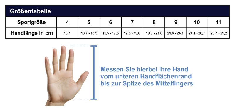 - Anti-Rutsch-Beschichtung der Handinnenflächen aus Silikon für maximalen Grip