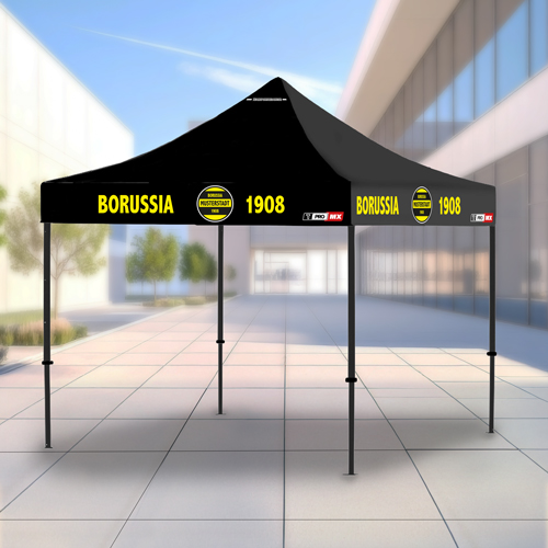 Sie erhalten einen hochwertigen T-PRO MX Faltpavillon. Der T-PRO MX Faltpavillon, mit den großzügigen Maßen von 3 x 3 m, ist die ideale Lösung für professionelle Einsätze auf Events, Messen, Märkten oder im privaten Bereich. Mit seinem robusten Scherengestänge aus legiertem Stahl bietet er maximale Stabilität und Langlebigkeit – selbst bei häufigem Auf- und Abbau. Die hochwertige Plane aus starkem, PVC-beschichtetem Oxford-Polyester ist 100 % wasserdicht, schmutzabweisend und UV-beständig. Darüber hinaus erfüllt sie die Anforderungen der Brandschutzklasse B1 und ist somit schwer entflammbar – ein klarer Pluspunkt für den Einsatz im öffentlichen Raum. Dank des praktischen Daumenverriegelungssystems lässt sich der Pavillon besonders einfach aufbauen. Die Höhe des Pavillons ist dreifach verstellbar und bietet Ihnen variable Durchgangshöhen. Im zusammengefalteten Zustand lässt sich der Pavillon bequem in der mitgelieferten Transporttasche mit Rollen verstauen und transportieren. Erhältlich in 5 Farben bietet der Pavillon für jeden Verein und Stil die passende Lösung. Durch unseren hochwertigen Wunschaufdruck lässt sich Ihr T-PRO MX Faltpavillon zusätzlich noch individualisieren und veredeln. Egal ob Vereinslogo, Nummer, Schriftzug, Sponsor, uvm. - Wir machen Ihren Faltpavillon zu einem echten Unikat - Einfach die gewünschte Druckseite auswählen und individualisieren! Schicken Sie uns hierfür Ihre Druckwünsche gern an folgende E-Mail: grafik@teamsportbedarf.de oder laden Sie Ihre Druckdaten ganz einfach direkt über unsere Website hoch. Dieses hochwertige Partyzelt verbindet Funktionalität, Sicherheit und Design auf höchstem Niveau und ist somit der perfekte Begleiter für jede Veranstaltung, ganz egal bei welchem Wetter! Weitere Produkte für Ihre nächste Veranstaltung und andere interessante Artikel können Sie ebenfalls in unserem Shop erwerben. Mit unseren Produkten trainieren bereits Mannschaften aus dem Profisport!