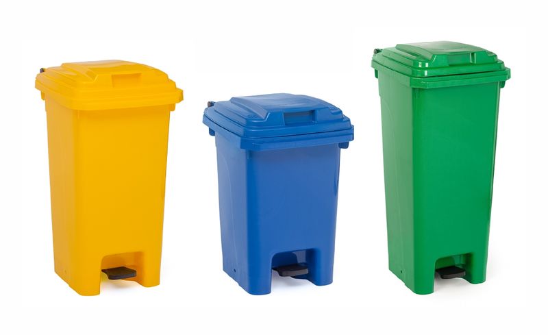 - Inhalt: 3 Mülltonnen (Farbe und Größe variieren)